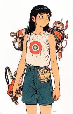 1girl,black hair,casual outfit,solo,cowboy shot,holding computer tools,obslete weaponwhite background,tatsuyuk,looking away<lora:Perfect Hands:1> <lora:age_slider_v4:-3> <lora:tatsuyuk:0.8>, score_9, score_8_up, score_7_up, score_6_up, score_5_up, score_4_up,zPDXL