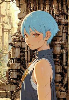 1girl,blue hair,upper body,ruins,obslete machine,tatsuyuk,looking at viewer, <lora:Perfect Hands:1>   <lora:age_slider_v4:-2>  <lora:tatsuyuk:0.8>, score_9, score_8_up, score_7_up, score_6_up, score_5_up, score_4_up,zPDXL