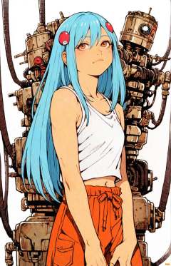 1girl,kid,blue hair,long hair,hair ornament,solo,tankobslete machine ,tatsuyuk,white background, <lora:Perfect Hands:1>   <lora:tatsuyuk:0.8>, score_9, score_8_up, score_7_up, score_6_up, score_5_up, score_4_up,zPDXL