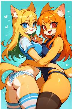 (anthro sandcat girl:1.3),blonde,(2girls:1.2),paws,(yellow fur:1.1), yurivarious hairstyle,various clothes,looking at viewer, panties, symmetrical_docking <lora:Perfect Hands:1><lora:沙丘猫:0.8>,<lora:naip33:0.8> <lora:age_slider_v4:-1> <lora:powerpuff_girls_Kim_Crab_style:0.4>, score_9, score_8_up, score_7_up, score_6_up, score_5_up, score_4_up,zPDXL