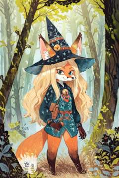 (anthro fox girl:1.4),(blonde hair:1.2),(solo:1.5),ameliforest,witch outfit and hat,grass,cowboy shot, looking at viewer, smile<lora:Perfect Hands:1> <lora:age_slider_v4:-2> <lora:Ameli:0.85>, score_9, score_8_up, score_7_up, score_6_up, score_5_up, score_4_up,zPDXL