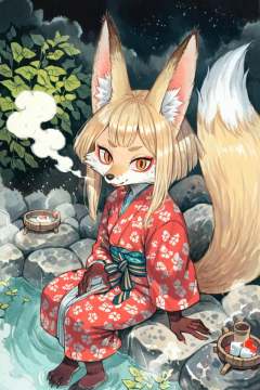 (anthro fox girl:1.4),(blonde hair:1.2),(solo:1.5),ameli,looking at viewer,from abovedeep dark night,hot spring,steam,red Yukata,japanese clothes, paws,close-up<lora:Perfect Hands:1> <lora:age_slider_v4:-2> <lora:Ameli:0.9>, score_9, score_8_up, score_7_up, score_6_up, score_5_up, score_4_up,zPDXL