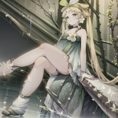 weilinai ,In the forest, by the stream, sitting on a rock.<lora:维里奈:1>,, (masterpiece),best quality,highly detailed,extremely detailed CG unity 8k wallpaper,illustration,highres,absurdres,beautiful detailed hair,shiny skin,