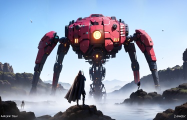 score_9, score_8_up, score_7_up, score_6_up, 8k, best quality, masterpiece, (ultra-detailed:1.1), good background, [<lora:TheUltimateShowdown-pony-Tanger-000005:0.75>::0.75], The ultimate showdown, player faces the boss, cg, rom behind, science fiction, robot, scenery, mecha, cape, cloak, 1boy, outdoors, standing, solo, sky, a man standing in front of a giant robot, a man standing in front of a giant robot,