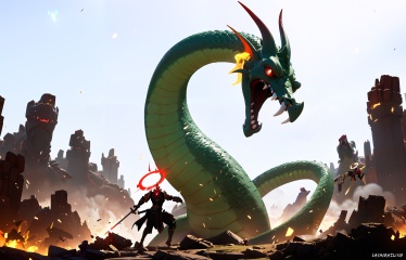 score_9, score_8_up, score_7_up, score_6_up, 8k, best quality, masterpiece, (ultra-detailed:1.1), good background, [<lora:TheUltimateShowdown-pony-Tanger-000005:0.75>::0.75], The ultimate showdown, player faces the boss, cg, halo, weapon, dragon, glowing, sword, shield, a painting of a dragon and a man fighting, the animation has a red and green dragon fighting with a red circle,
