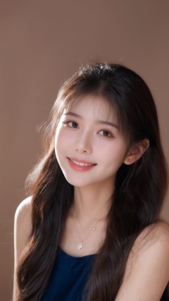 <lora:meinv220:0.8>,1girl, solo, jewelry, necklace, brown eyes, looking at viewer, smile, brown hair, realistic, upper body, simple background, breasts
