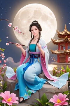 1girl,Xnangongwan,flower,big breasts,moon