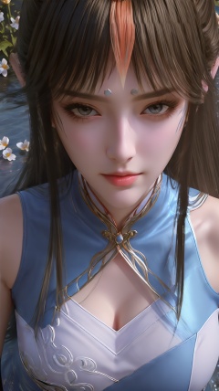 fqr,1girl,solo,black hair,long hair,looking at viewer,breasts,closed mouth,forehead jewel,shoulder cutout,facial mark,realistic,flower field,sky,river,mizu,large breasts,,,waterfall,peach_blossom,high saturation,high_contrast,standing,colorful hair,portrait,close ups,<lora:QYpifuV1:1>,<lora:玫瑰花场景-王导:0.6>