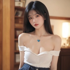 1girl,arms_behind_back,bare_shoulders,black_hair,blurry,blurry_background,blurry_foreground,breasts,brown_eyes,collarbone,cowboy_shot,depth_of_field,heart,jewelry,lips,long_hair,looking_at_viewer,motion_blur,necklace,off_shoulder,parted_lips,photo_\(medium\),pov,pov_hands,shorts,solo_focus, <lora:sifang_20231118123505:0.6>