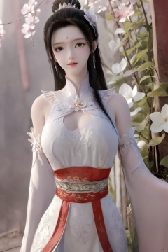 Xbaihehuai,masterpiece,(best quality),official art, extremely detailed cg 8k wallpaper,((crystalstexture skin)), (extremely delicate and beautiful),highly detailed,1girl,solo,long hair,headwear,,(black hair),(closed mouth),(standing),(chinese clothing),dress,Headwear, jewelry,,looking at the audience,Facing the camera,indoor,Street, Sunny,(whole body),looking_at_viewer, (big breasts:1.53), upper body,Xbaihehuai, ty-hd, desert_sky,X-Hydrangea,Xcheongsam,X-ziling