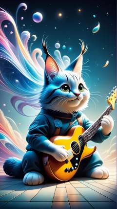 <lora:ElementWindPDXL:0.5>score_9, score_8_up, score_7_up, ElementWind cute fluffy caracal in pants sitting politely with electric guitar, facing the camera, anime art style, portrait, high detail, sharp focus, digital painting, artstation, concept art, art by hayao miyazaki and artgerm and greg rutkowski and alphonse mucha., wind, blowing ethereal streaks, gusts