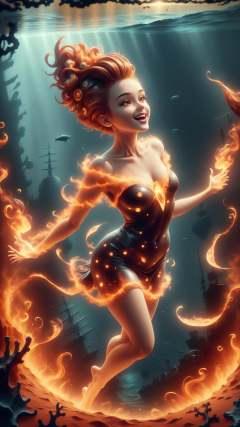 <lora:ElementFire:1>ElementFire Orange Surrealist painting of a treasure map on a shipwreck in a dream-like underwater world, muted colors, watercolor style, glowing golden coins, intricate map details, seaweed and coral, sunken ship, shafts of light, mysterious atmosphere, deep sea,Street photography, Arab, old, woman, Short hair, Faux Hawk hair, Caesar cut, Caramel Brown hair, Beanie, Oval eyes, Black eyes, Goggles, Soft Cupid's Bow lips, Burgundy lips, Circle face, Party makeup, Neutral, Petite body, Cartwheel, Laughing candidly, Retro dress, Strip light, Crepuscular rays, Sunset, Partly cloudy, ocean blue background, Meadow background, Hasselblad X1D II 50C, Medium close-up shot, Off center shot, (Masterpiece:1.3) (best quality:1.2) (high quality:1.1)