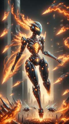 <lora:ElementFire:1>ElementFire Orange Magnified snowflake and robotic swarm at sunset, intricate patterns, golden hour, warm colors, bokeh background, soft lighting, isolated on a black background, futuristic city, swarm of robots, metallic textures, cool color palette, neon lights, large crowd of robots, aerial view, dynamic motion, clean and sleek, high contrast, sharp focus,Mirror, (Masterpiece:1.3) (best quality:1.2) (high quality:1.1)