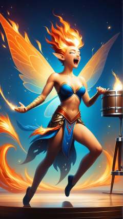 <lora:ElementFirePDXL:0.5>score_9, score_8_up, score_7_up, ElementFire Orange Fantasy illustration of a tapestry woven from shadows, with a ballet of fireflies in the velvet night. A magical musical performance is taking place in a moonlit glade, with various mythical creatures playing instruments such as unicorns on harps, fairies on flutes, and dragons on drums. The atmosphere is enchanting and dreamlike, with a sense of wonder and awe., fire, flames, blazing, (Masterpiece:1.3) (best quality:1.2) (high quality:1.1)