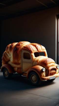 Cinematic photo of  <lora:CroissantStyleXL:1> CroissantStyle truck, in location: garage, detailed background, saturated colorful, atmospheric