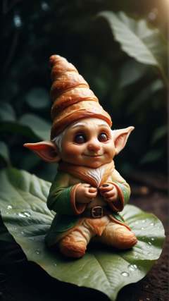 Cinematic photo of  <lora:CroissantStyleXL:1> CroissantStyle an elf greeting the first light of dawn seated on a dewy leaf in the enchanted garden, in location: hidden sanctuary, detailed background, dynamic angle, atmospheric