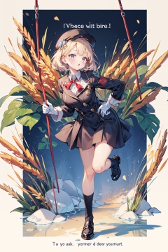 absurdres,absolutely resolution,incredibly absurdres,highres,ultra detailed,official art,unity 8k wallpaper,Kinetic Typography,BREAK(1girl, solo:1.4),beautiful and shiny skin,coquettish skin,running,from_backupper_body,hands in pockets,sleepy,BREAKcrochet braids,cornsilk hair,Retro flight attendant uniform with a swing dress, pillbox hat, and gloves,BREAKClimbing roses, Snow-covered cottage, Winter garden, Snowflakes, Winter wonderland, English charm,Peonies,BREAK(wheat , english text, border:1.6),BREAKnice hands,perfect hands,<lora:增强减少细节add_detail:0.3>,