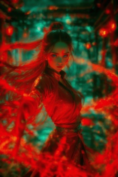 dancing,fighting stance,red-aura,using red-magic,red-magic,1girl,solo,long hair,blue eyes,<lora:magic_fighting_red_512_dreamshaper_8:0.8>,