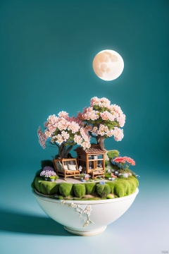 interior design, high definition, 8k, rich details,miniature,micro-landscape,moon,flower,