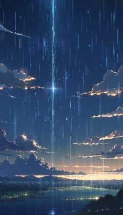 masterpiece,best quality,Makoto Shinkai,wallpaper,landscape,depth of field,night,light particles,light rays,sidelighting,clouds,