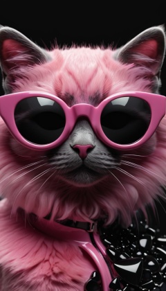 (best quality, 8K, high resolution, masterpiece),ultra detailed,(3D CGI),a beautiful pair of sunglasses,trendy,fashionable,pink,silver and black stylized Cat-eye shape,on a black background,countryside advertising,winning photo,cat,