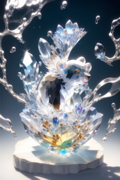 elegant and minimalist,glass texture,white transparent,transparent crystal,transparent crystal bear,<lora:kong_玻璃水晶质感-000010:1>,
