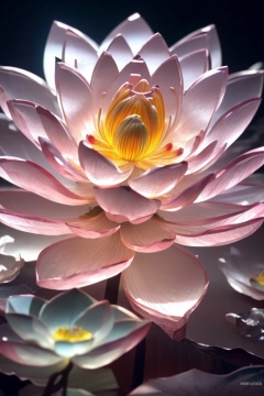 <lora:kong_玻璃水晶质感>,close up on a lotus petal made of transparent glass material,pink tone,crystal and transparent,superb three-dimensional feeling,sense of hierarchy,bioluminescence,new 3d ancient style,macro photography,romantic ancient style,depth of field,cinematography,rich,large area blank space,elegant and minimalist,3d particles,ultimate composition,