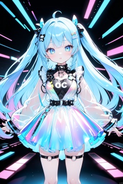 transparent color PVC clothing, transparent color vinyl clothing, prismatic, holographic, chromatic aberration, fashion illustration, masterpiece, girl with harajuku fashion, looking at viewer, 8k, ultra detailed, pixiv,
