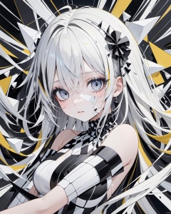 P14n03l3g4nt3b0n3, porcelain-skinned woman surrounded by ebony and ivory flegment, abstract modern art, dynamic geometric abstraction, kinetic energy in static forms, minimalist palette with crystal accents, expressionist brushstrokes andrecise angles, visual dissonance of fragmented time, emotional depth through abstract geometry, surreal interpretation of grief, juxtaposition of fluid motion and rigid structures, avant-garde exploration of form and emotion, immersive textures, stark contrasts with geometric dynamism, evocative symbolism, detailed hyperrealism, cinematic scope, artistic surrealism, captured in 8k resolution