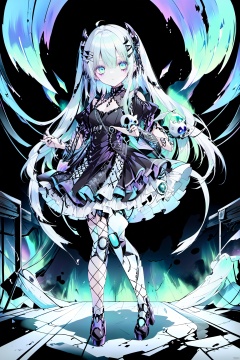 , TIANQIJI,1girl,casting spells,detailed face, detailed hand,fantasy,Aurora Borealis,dramatic lighting,shadows,(art by Harry Clarke Hiroshi Yoshida)