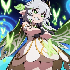 masterpiece, best quality, <lora:tgm-xl-a3.1:1>,1girl,nahida (genshin impact),crossed arms, grin,cowboy shot, danmaku,glowing, flying,