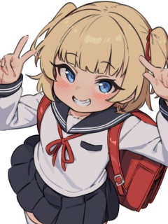 masterpiece, best quality, <lora:style578-a31-000020:1>,loli,1girl, solo, skirt, randoseru, smile, thighhighs, bag, blue eyes, crime prevention buzzer, white background, blonde hair, school uniform, backpack, grin, looking at viewer, simple background, white thighhighs, pleated skirt, long sleeves, red bag, two side up, short hair, sailor collar, ribbon, shirt, black skirt, serafuku, bangs, white shirt, collarbone, zettai ryouiki, blush, red ribbon, teeth, neck ribbon