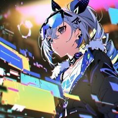 masterpiece, best quality,<lora:yoneyama-a31:1>,yoneyama mai, 1girl, silver wolf \(honkai: star rail\), honkai: star rail,grey hair, sunglasses, face,blurry, chromatic aberration, colorful, holographic interface, drone,