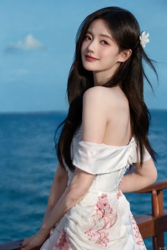 1girl, solo, dress, flower, long_hair, looking_at_viewer, white_dress, bangs, ahoge, short_sleeves, outdoors, closed_mouth, hair_between_eyes, sky, spider_lily, breasts, ribbon, pink_hair, purple_eyes, day, medium_breasts, sailor_dress, cloud, blue_sky, sailor_collar, blurry_foreground, red_flower, blurry, blush, hair_ribbon, bug, jiqing, babata, maolilan, (\MBTI\),maolilan,1girl,long hair,breasts,looking at viewer,smile,blue eyes,brown hair,dress,medium breasts,collarbone,outdoors,sky,cloud,dark skin,water,white dress,blue sky,sleeveless dress,ocean,beach,sand,sun,sundress ,