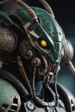 film photography aesthetic, male leef, tribal leader,, railgun, cyberpunk of insectoid specie- insect-like being with segmented exoskeletons, multifaceted eyes, and antennae , space marine , Nikon FE Camera, close-up,