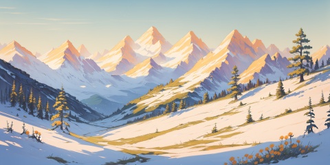 scenery,outdoors,light particles,beautiful detailed sky,beautiful detailed glow,best shadow,panorama,(Pass, Snow, Alps, Mountains, Peaks, Cold, Adventure, Serenity:1.3),(Mountains, Hiking trail, Noon sun, Clear sky, Fresh air, Adventure:1.2),(Maple trees, Acorns, Mushrooms, Fallen leaves, Golden sunlight, Rustling breeze:1.1),(masterpiece, best quality, beautiful and aesthetic:1.3),extremely detailed CG,ultra-detailed,beautiful concept illustration,illustration,extremely fine and beautiful,perfect details,<lora:YOUHUA:1>,oil painting \(medium\),