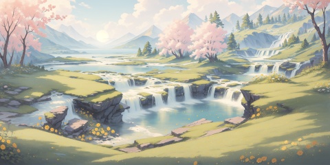 scenery,outdoors,beautiful detailed sky,beautiful detailed glow,best shadow,panorama,(Waterfall, Tropical, Paradise, Cascading, Mist, Rocks, Colors, Serenity:1.3),(Lakeside meadow, Picnic, Noontime sun, Nature scenery, Enjoyment, Relaxation:1.2),(Cherry blossoms, Garden path, Dawn light, Sakura petals, Tranquil setting, Japanese elegance:1.1),(masterpiece, best quality, beautiful and aesthetic:1.3),extremely detailed CG,ultra-detailed,beautiful concept illustration,illustration,extremely fine and beautiful,perfect details,<lora:YOUHUA:1>,oil painting \(medium\),