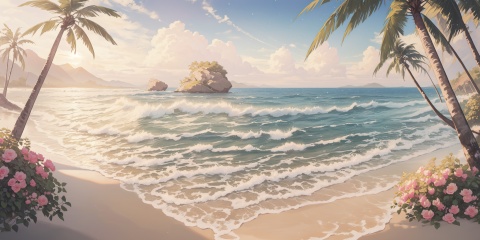 scenery,outdoors,light particles,beautiful detailed sky,beautiful detailed glow,best shadow,panorama,(Oasis, Sand dunes, Palm trees, Water, Camel, Heat, Mirage:1.3),(Rocky beach, Campfire, Midnight, Firelight, Waves crashing, Serenity:1.2),(Heritage roses, Topiary, Wrought iron benches, Gazebo, Classic elegance, Formal garden:1.1),(masterpiece, best quality, beautiful and aesthetic:1.3),extremely detailed CG,ultra-detailed,beautiful concept illustration,illustration,extremely fine and beautiful,perfect details,<lora:YOUHUA-000018:1>,oil painting \(medium\),