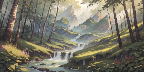 scenery,outdoors,light particles,beautiful detailed sky,beautiful detailed glow,best shadow,panorama,(Rainforest, Trees, Foliage, Undergrowth, Waterfall, Humidity, Wildlife, Canopy:1.3),(Mountain river, Morning mist, Trees, Serenity, Misty atmosphere:1.2),(Desert wildflowers, Arid landscape, Desert bloom, Colorful desert, Springtime explosion, Desert oasis:1.1),(masterpiece, best quality, beautiful and aesthetic:1.3),extremely detailed CG,ultra-detailed,beautiful concept illustration,illustration,extremely fine and beautiful,perfect details,<lora:YOUHUA-000018:1>,oil painting \(medium\),