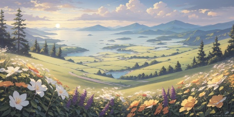 scenery,outdoors,light particles,beautiful detailed sky,beautiful detailed glow,best shadow,panorama,(Meadow, Flowers, Mountains, Grass, Bees, Colors, Serenity, Breeze:1.3),(Misty valley, Sunrise, Mountains, Fog, Serenity, Tranquility:1.2),(Olive trees, Sea views, Whitewashed buildings, Olive harvest, Aegean breeze, Greek charm:1.1),(masterpiece, best quality, beautiful and aesthetic:1.3),extremely detailed CG,ultra-detailed,beautiful concept illustration,illustration,extremely fine and beautiful,perfect details,<lora:YOUHUA-000018:1>,oil painting \(medium\),