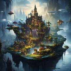 ((masterpiece)),((best quality)),8k,high detailed,ultra-detailed,illustration,concept art,fantasy,a floating island,candy tree,porcelain house, (floating waterfalls:1.1),(floating islands in the sky:1.2),magical creatures,capturing the otherworldly beauty of a floating fantasy realm,4esthet1c, <lora:AestheticScene:0.8>