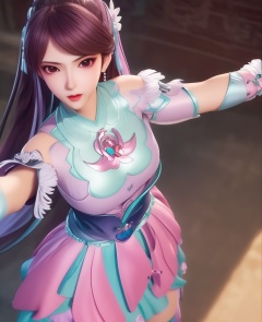 <lora:596-DA-炼气十万年-凌青姝:0.8>(,1girl, ,best quality, ),looking at viewer,  ,ultra detailed background,ultra detailed background,ultra realistic 8k cg,, ,masterpiece, (( , )),, ,   ,   cure blossom,  ,,  (cleavage), (), ,,