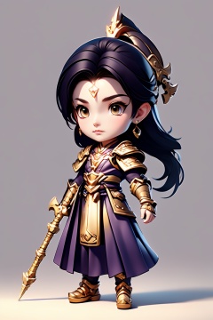 <lora:AgainGameLora:0.7>, 1girl, solo, chibi, full body, jewelry, white background, dress, standing, earrings, hold,weapon,spear,lance of longinus,lance,