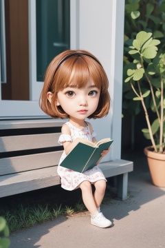 1girl,full body,indoors,reading book,chibi,outdoors,