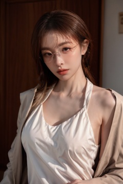 Xlongni,1Girl, suit, (photo reality: 1.3) , Edge lighting, (high detail skin: 1.2) , 8K Ultra HD, high quality, high resolution, (photo reality: 1.3) , wear a pink suit jacket, white shirt inside, large breasts, high-grade feeling, texture pull full, 1 girl,Xlongni, (Frameless glasses:1.29),(big_breasts:1.29)