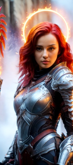 1 girl, Flame body, masterpiece, top quality,phoenix dark is x-men, beautiful and aesthetic:1.2, (1girl:1.3), (full body:1.5),red suitbody ,looking at viewer,fire hair, extreme detailed,(fire hands:1.5),fire,smoke,goddess, detailed, detail fingers, detail face, masterpiece,ultra realistic,32k,extremely detailed CG unity 8k wallpaper, best quality, Cinematic photography, movie mood, cinematic light, compelling composition, storytelling elements, conveys emotion, mood, and narrative depth, creating visually striking images that feel like still frames from a film, Cinematic portrait photography, capture subject in a way that resembles a still frame from a movie, cinematic lighting, story, narrative quality, drawing viewers into the scene and evoking a sense of cinematic immersion, capturing emotion, professional, engaging, compelling composition, night photography, nocturnal beauty, city lights, starry skies, celestial wonders, moonlit landscapes, urban glow, capturing the essence of darkness, ethereal atmosphere, dramatic shadows, magical ambiance, long exposure techniques, expert use of light sources, Heavenly Breasts,COLORFUL GRADIENT,score_9_up score_8_up score_7_up,DAMIMI,Spear and Shield,UTASHIMADG fishnets mecha leotard armor, HKMAGIC,Wearing fist gauntlets, HKSTYLE,MECHA ANGEL SOLDIER,((Hold huge spear and huge shield:1.5)),Hold spear and Shield