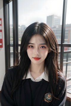 1girl,upper body,school uniform:1.5,black hair,seductive smile,blush,in school,best quality,masterpiece,realistic,HDR,UHD,8K,masterpiece,realistic,<lora:abel好看的姿势:0.2>,<lora:QYpifuV1:0.6>,<lora:abel光艺术:0.25>,<lora:shaonv6-4:0.35>,