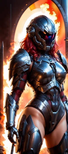 1 girl, Flame body, masterpiece, top quality,phoenix dark is x-men, beautiful and aesthetic:1.2, (1girl:1.3), (full body:1.5),red suitbody ,looking at viewer,fire hair, extreme detailed,(fire hands:1.5),fire,smoke,goddess, detailed, detail fingers, detail face, masterpiece,ultra realistic,32k,extremely detailed CG unity 8k wallpaper, best quality, Cinematic photography, movie mood, cinematic light, compelling composition, storytelling elements, conveys emotion, mood, and narrative depth, creating visually striking images that feel like still frames from a film, Cinematic portrait photography, capture subject in a way that resembles a still frame from a movie, cinematic lighting, story, narrative quality, drawing viewers into the scene and evoking a sense of cinematic immersion, capturing emotion, professional, engaging, compelling composition, night photography, nocturnal beauty, city lights, starry skies, celestial wonders, moonlit landscapes, urban glow, capturing the essence of darkness, ethereal atmosphere, dramatic shadows, magical ambiance, long exposure techniques, expert use of light sources, Heavenly Breasts,COLORFUL GRADIENT,score_9_up score_8_up score_7_up,DAMIMI,Spear and Shield,UTASHIMADG fishnets mecha leotard armor, HKMAGIC,Wearing fist gauntlets, HKSTYLE,MECHA ANGEL SOLDIER,((Hold spear and huge shield in front of body:1.5)),Hold spear and Shield,MAD-HVYBDYARMR HEAVY BODY ARMOR HELMET, Spell rings,***y body
