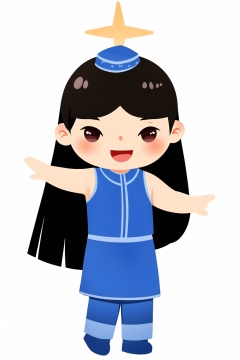 1boy, :d, bangs, black hair, blue pants, blue shirt, brown eyes, hat, kp, long hair, long sleeves, outstretched arms, simple background, sleeveless dress, smile, solo, white background,<lora:kp_Q萌民族风V1:0.8>,kp,chibi,, masterpiece, best quality, unity 8k wallpaper,8k, ultra high res