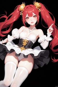 Realistic style, cinematic work, 8K wallpaper, masterpiece, very realistic quality, best quality, masterpiece, high-level, high-resolution,,,Edge lighting, dual tone lighting, soft lighting, The illuminated surface of the material has bright spots and highlights, which flicker and have a mirror effect when reflected, There are sparkling spots on the armor,,,1 girl, mature female, solo, full body, looking at viewer, lace, strong rim light, Standard proportion of female body, golden proportion of female body,,,Standing, standing posture, Sexy full body standing posture,,,,(zexi, 1girl, red hair, twintails, low twintails, blush, yellow eyes, ahoge, bangs, hair ornament, crown, long hair, mini crown, floating hair, earrings,white dress, white pantyhose, sleeveless, breasts, shoes, bare shoulders, black bow, bow, small breasts, outstretched arm, frills, white thighhighs, puffy sleeves, thighhighs, detached sleeves, dress, pantyhose, black footwear, cowboy lens,:1.2),,bare shoulders, off shoulder, black hairband, bikini bottom only, short dress, swimsuit, pleated dress, bikini, floating hair, blush, ass visible through thighs, skirt,White high-heeled shoes,:1.2),,,colorful,(detailed skin: 1.3), (detailed face: 1.3),clear focus,delicate,(mature women: 1.2),(glossy skin+glossy skin: 1.4),(sweating: 1.1),(big_eyes),red_ eyeshadow,long_ Eyelashes, red lips,,,simple background, grey background,,,(Diamond hair accessories, diamond necklaces, diamond earrings, diamond earrings, clothes embedded with diamonds, armor embedded with diamonds,:1.3),, zexi<lora:EMS-325482-EMS:0.230000>